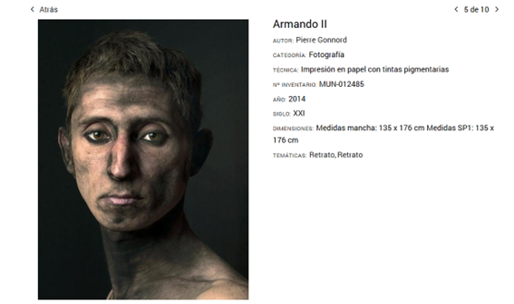 Conforme se van desgranando las preguntas se muestra una serie de imágenes para que el grupo vaya eligiendo elementos que son imprescindibles para la vida de los seres naturales y de los seres humanos (comida, agua, vestido, refugio o casa, sol…) y también otros elementos que no son tan necesarios pero sin los cuales ya no sabemos vivir (energía para mover un coche, luz eléctrica, un móvil…) ¿De qué están hechos estos elementos? ¿De dónde se extraen? ¿Cuánto nos duran? Esta es la excusa para hablar de extracción y explotación de los recursos y centrarnos en la siguiente obra, Armando II de Pierre Gonnord, “el fotógrafo del alma”.