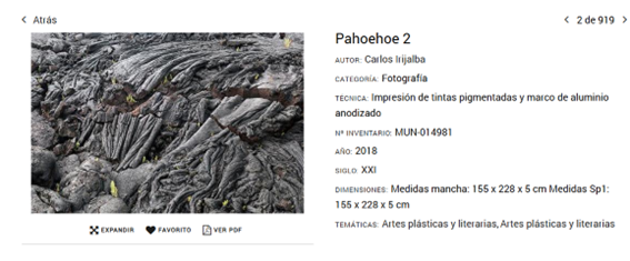 “Esta fotografía es de un artista navarro que retrata el comienzo de la vida con una mirada hacia la importancia del suelo y del cuidado de la naturaleza, de lo más pequeño, que acaba de nacer”, les dice la persona del MUN que les acompaña. Seguidamente, otro educador/a de Mancoeduca les pregunta ¿Hay vida en un volcán? Y después explica que hay microorganismos que pueden vivir en las rocas y las aguas volcánicas soportando grandes temperaturas. “Sobre esta colada de lava vemos cómo pequeños brotes de helecho se abren paso, ¿cómo habrán logrado crecer allí? La lluvia ha podido ir dejando tierra fértil, las semillas han podido llegar en el excremento de un pájaro, algunas han germinado y comienzan a crecer”.